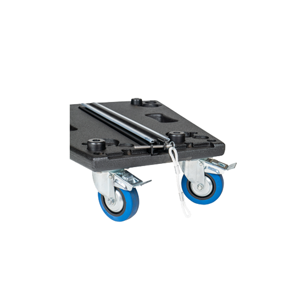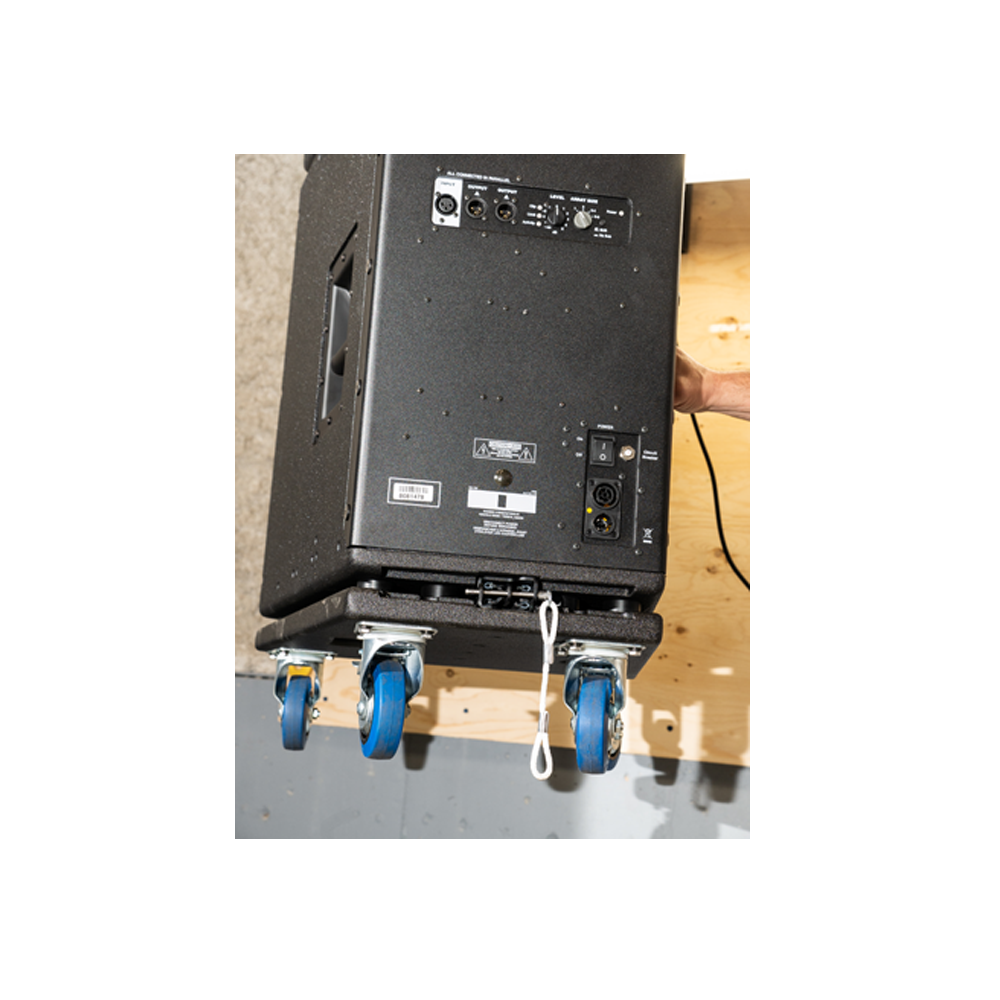 - The dolly is secured to the cabinets using the same RAIL and LOCKBAR rigging hardware